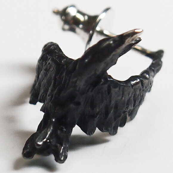 耳にしがみつくようなカラスがとってもキュート!しかしクワっと開いた口ばしや、無骨かつ艶やかな翼の質感などには迫力が込められ、ダークな印象もあり…。